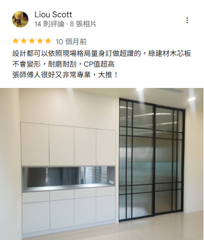 「現在極簡風當道,早已不流行以前櫃子做整片的風格!何況小空間反而更加需要適度「留白」才不會有過度擁擠的感覺。」